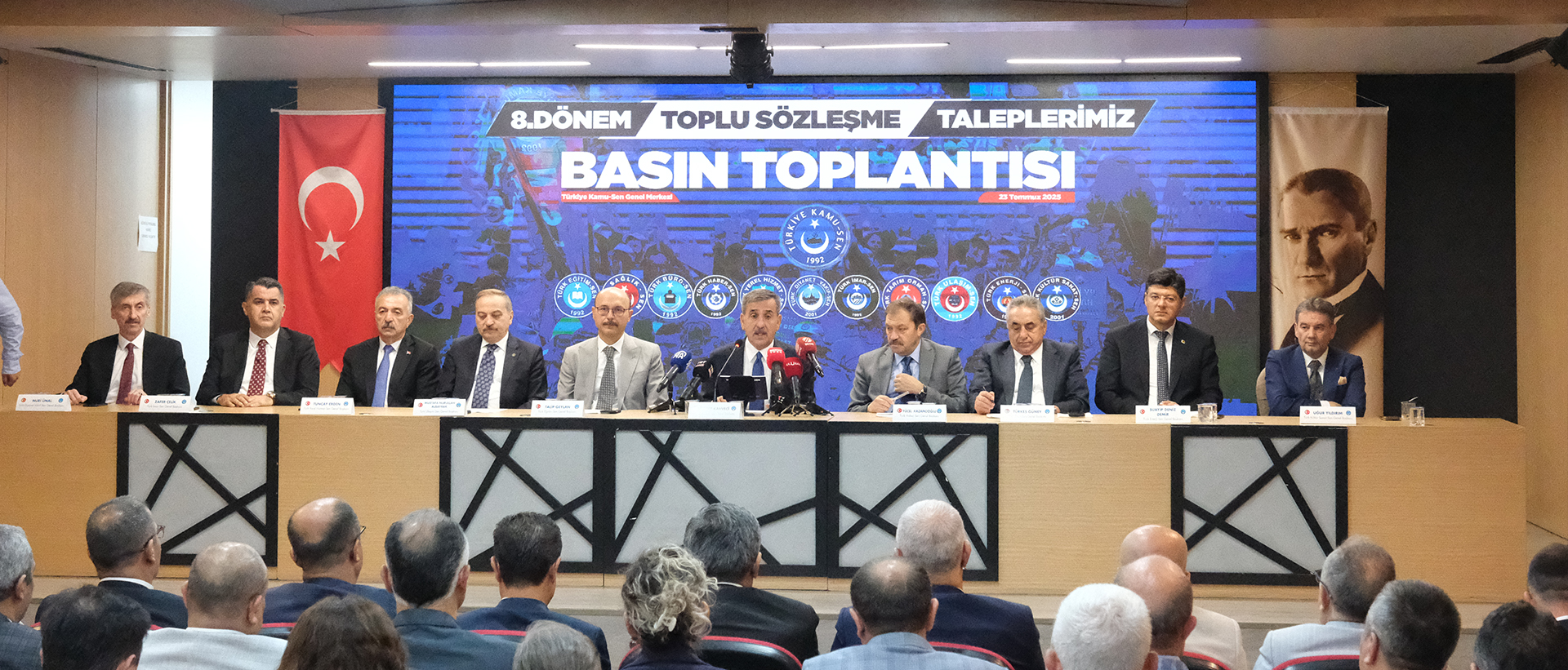Türkiye Kamu-Sen Genel Başkanı Önder Kahveci başta olmak üzere, Türkiye Kamu-Sen’e bağlı sendikaların Genel Başkanları, Genel Merkez Yöneticileri ve basın mensuplarının katılımlarıyla gerçekleştirdiğimiz toplantımızda;