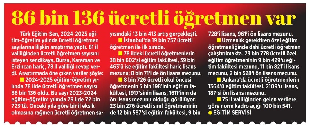[ad_1] <br>86 Bin 136 Ücretli Öğretmen Var – Milliyet <br>[ad_2] <br><a href="https://turkegitimsen.org.tr/86-bin-136-ucretli-ogretmen-var-milliyet/" target="_blank">Kaynak </a>