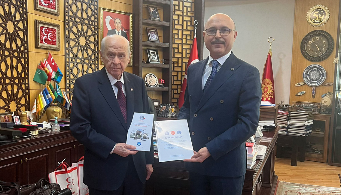 Genel Başkanımız Talip Geylan, 04.03.2024 tarihinde MHP lideri Sayın Devlet Bahçeli’ye Türk Eğitim-Sen’inTevhid-i Tedrisat Kanunu’nun kabul edilişinin 100. yılı anısına düzenleyeceği “Türk Asrı ve Türkiye Yüzyılı’nda Milli Eğitim Çalıştayı” ve Milli Eğitim Bakanlığı’nın yürüttüğü yeni müfredat hazırlıklarına yönelik çalışmaları hakkında bilgi verdi.