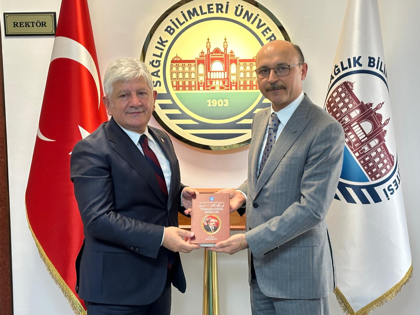Genel Başkanımız Talip Geylan ziyarette, Sayın Rektöre Ziya Göalp’in vefatının 100. Yılı anısına sendikamızın hazırladığı Türkçülüğün Esasları kitabını takdim etti.