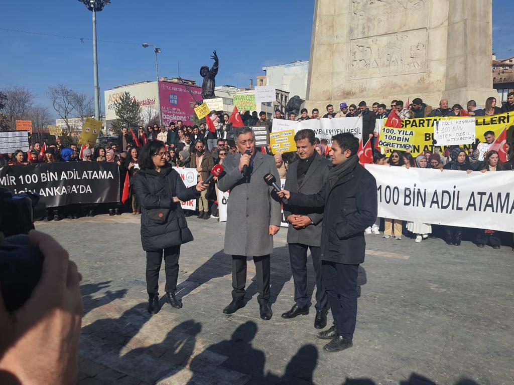 Eylemde bir konuşma yapan Genel Sekreter Haydar Urfalı, 20-30 bin öğretmen atama sayısının çok yetersiz olduğunu söyledi. Şu anda 80 bin civarında ücretli öğretmenin çalıştığını kaydeden Urfalı,  “Ülkemizde 80 bin civarında ücretli öğretmen görev yapıyor. Talebimiz şudur: Yaklaşık 500 bin civarında atanmayan öğretmenimiz var. En az görev yapan ücretli öğretmen sayısı kadar atama bekliyoruz” diye konuştu.