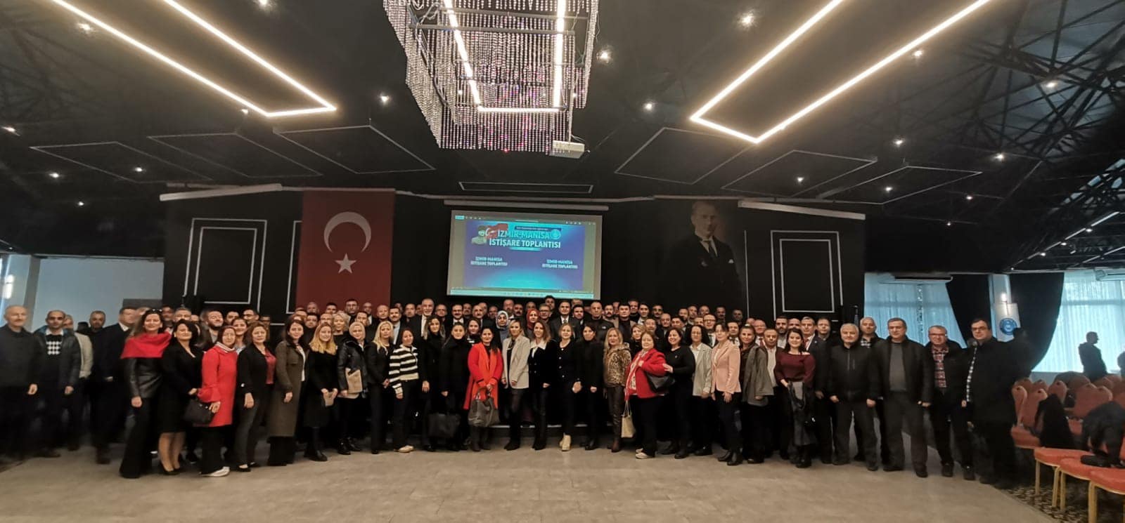 İzmir ve Manisa Şubelerimizin istişare toplantılarının ikinci bölümünde, Genel Başkan Yardımcımız Selahattin Dolgun teşkilat mensuplarımızla değerlendirmelerde bulundu.118 şube, 2 il temsilciliği, 978 ilçe temsilciliği, 260 bine yaklaşan üyemiz ile bugün ülkemizin en güçlü ve etkili sendikası olduğunu kaydeden Dolgun, “Üye sayımız her geçen gün artmaya devam ediyor. Bugüne kadar verdiğimiz mücadele ile kamu görevlilerinin sahip olduğu hakların büyük çoğunluğunda emeği, imzası olan ve her türlü olumsuz şarta rağmen üye sayısını istikrarlı bir biçimde artıran Türkiye Kamu-Sen ve bağlı sendikalarımız, siz değerli teşkilat mensuplarımızın gayretleriyle, bu süreçten de büyüyerek çıkacaktır. Gerçekleştirilecek toplu sözleşme görüşmelerine yetkili konfederasyon olarak katılmak, sendikalarımızın yetkiyi alarak kamu çalışma hayatında yaşanan travmayı bertaraf etmesi için önümüzde tarihi bir dönemeç bulunmaktadır. Bu noktada tüm kamu çalışanlarını Türkiye Kamu Sen çatısı altında birleşmeye davet ediyorum.” dedi.