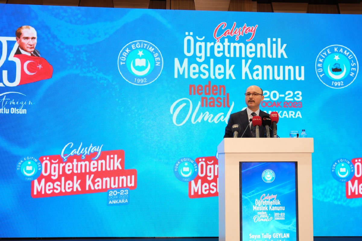 Adı Öğretmenlik Meslek Kanunu olan bir kanunun içerisinde en azından öğretmenlerin tabi olduğu süreç ve mevzuatı ekseriyetle yer alması gerektiğini bildiren Geylan, “Öğretmen yetiştirme ile atama ve yer değiştirmeler bu kanunda yer almalı. Öğretmene şiddet konusu da kanunda olması gereken hususlardan birisidir. Gün geçmiyor ki öğretmene bir saldırı, darp haberi görmeyelim. Bu konudaki yasal düzenlemenin kanunda yer alması lazım. Önceki yıl Türk Eğitim-Sen olarak öğretmenlere yönelik şiddet konusunda bir kanun teklifi hazırlayarak, Iğdır Milletvekili Sayın Yaşar Karadağ aracılığıyla TBMM’ye sunmuştuk. Herkes bilmelidir ki, öğretmenin itibarını korumadan eğitimde istediğimiz yere ulaşmamız mümkün değildir. Bunun için öğretmene şiddet meselesinin toplumun gündeminden çıkması lazım. Unutulmamalıdır ki; öğretmene verilen değer çocuklara verilen kıymettir. Öğretmenin etkinliğinin ve itibarının artırılması çocuklarımıza sahip çıkmak anlamına gelir.” diye konuştu.