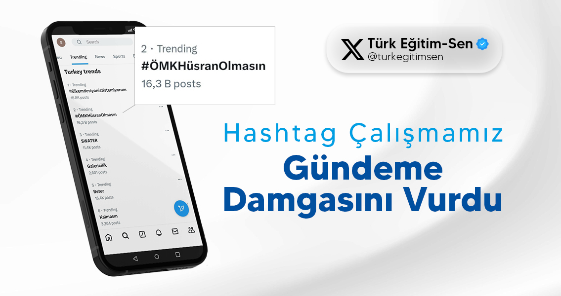 Genel Başkanımızın ilk paylaşımıyla başlayan çalışmamıza binlerce mesaj geldi. Kısa sürede çalışmamız Türkiye gündemine yerleşerek zirveye yükseldi. Tüm öğretmenlerimize çalışmamıza verdiği destekten dolayı teşekkür ediyoruz.