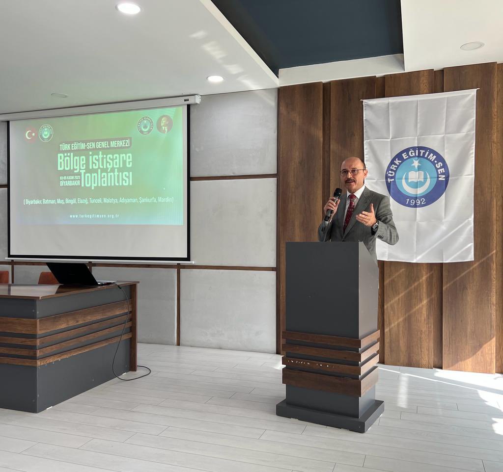 Eğitimin ve eğitim çalışanlarının gündemi, sendikal çalışmalara ilişkin değerlendirmelerin yapıldığı toplantıda konuşan Genel Başkanımız Talip Geylan;  “Güneydoğu Anadolu Bölge Toplantımızda; Diyarbakır, Bingöl, Muş, Batman, Tunceli, Elazığ, Malatya, Mardin, Adıyaman ve Şanlıurfa teşkilat yöneticilerimizle bir araya geldik. Şube yönetim kurulu üyelerimiz, ilçe ve üniversite temsilcilerimizle hasbihal ettik. Türk Eğitim Sen bayrağını şeref ve başarıyla taşıyan her bir yol arkadaşımla gurur duyuyorum. Var olsunlar…” dedi.