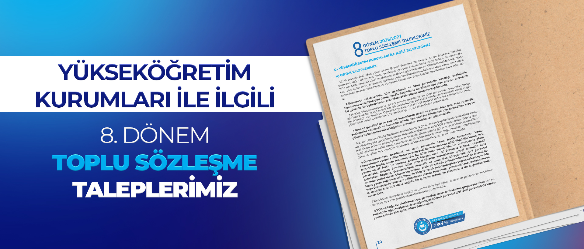 Bu kapsamda üniversitelere ve üniversite çalışanlarına büyük önem veren sendikamız, 8. Toplu Sözleşme Görüşmelerinde bu alana yönelik de taleplerini gündeme getirdi. Üniversitelerimizde yaşanan sorunların çözümü ancak örgütlü bir mücadele ile mümkün olacaktır.